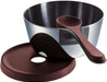 Utensile per la cottura della pasta composto da una casseruola a manico lungo in trilamina, un coperchio in acciaio inossidabile 18/10 lucido, un cucchiaio e un sottopentola in melammina. Fondo in acciaio magnetico adatto anche alla cottura a induzione.