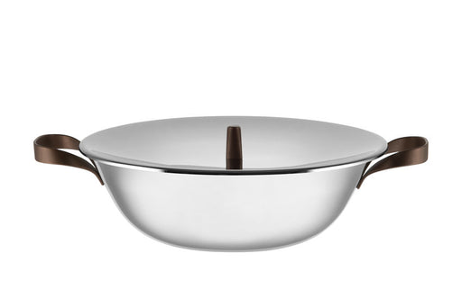 AlessiIn magazzinoWok in trilamina (AISI 430, alluminio, acciaio inossidabile 18/10) con coperchio in acciaio inossidabile 18/10. Manici e pomolo in acciaio inossida...