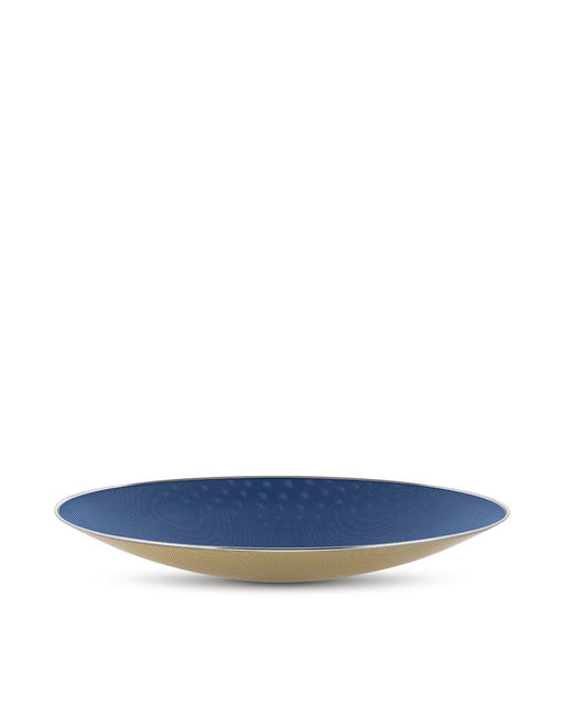 AlessiIn magazzinoCentrotavola traforato in acciaio colorato con resina epossidica, blu e avorio. Alessi 100 Values Collection.