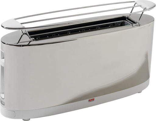 AlessiIn magazzinoTostapane con griglia scaldabrioche in acciaio inossidabile 18/10 lucido e PC, bianco. Spina europea. 1080W