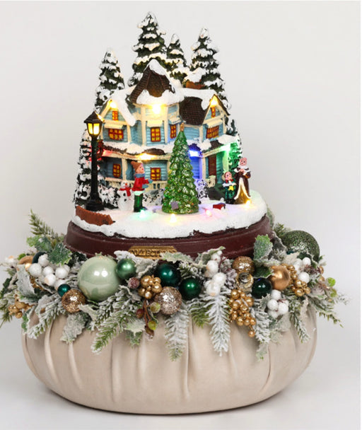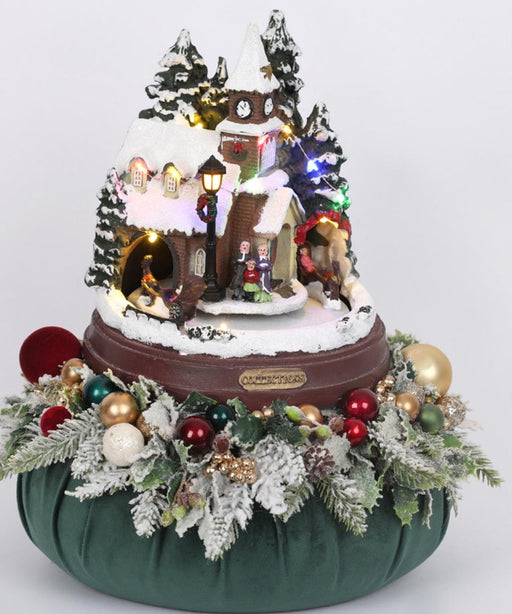 Fiori di LenaIn magazzinoPaesaggio natalizio con base in velluto e giostrina verde inglese D30 - Fiori di Lena