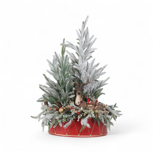 Centrotavola Natalizio con Busto di Renna e Rami Decorati 85 cm - Fiori di Lena
