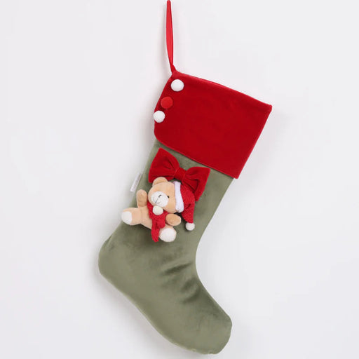 Calza Natalizia in Velluto Verde con Orsetto 43 cm - Fiori di Lena