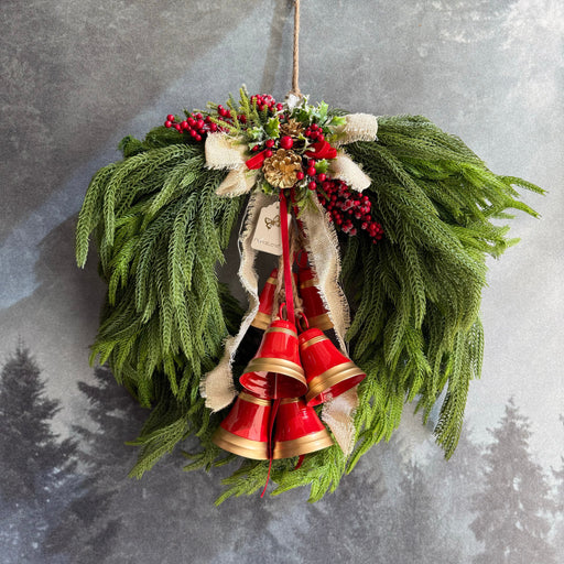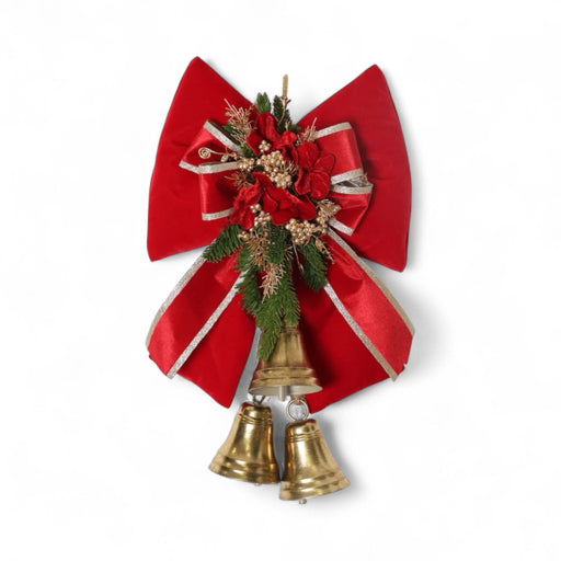 Fiocco in Velluto Rosso con Campane e Rami di Pino 55 cm - Fiori Di Lena