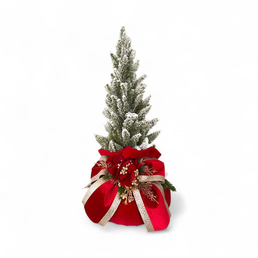 Pouf in Velluto Rosso con Alberello Innevato e Fiocco 50 h cm - Fiori di Lena