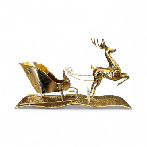 Struttura Natalizia in Metallo Oro con Cervo e Slitta - Fiori di Lena