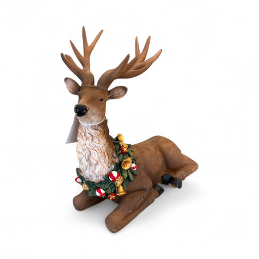 Cervo Disteso in Resina Marrone con Dettagli Natalizi - Fiori di Lena