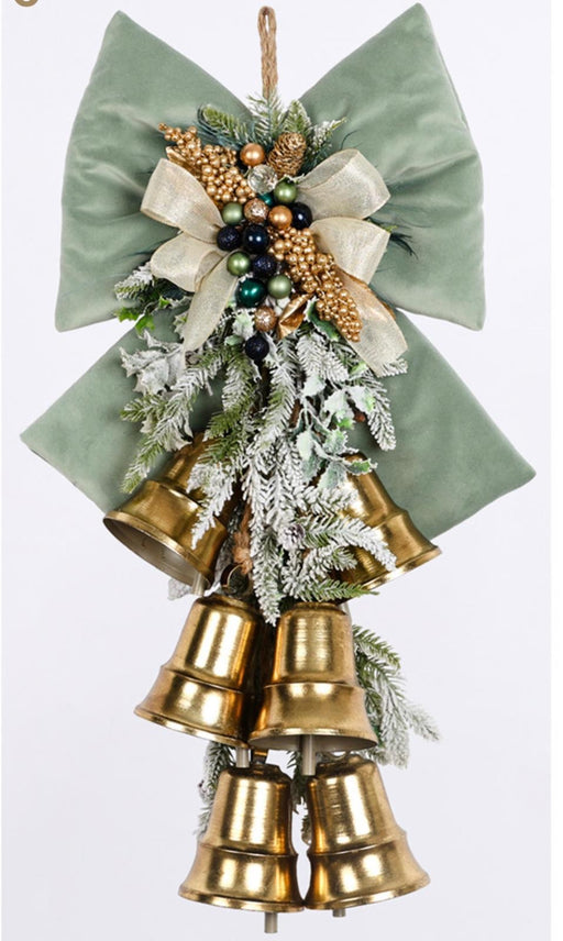 Fiocco in velluto con decorazione e 7 campane H75 CM – Acquamarina - Fiori di Lena