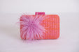 Clutch in Rafia con Applicazione Piuma e Tracolla Fucsia