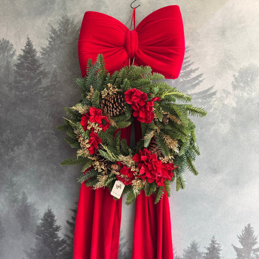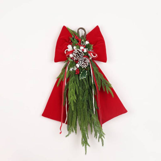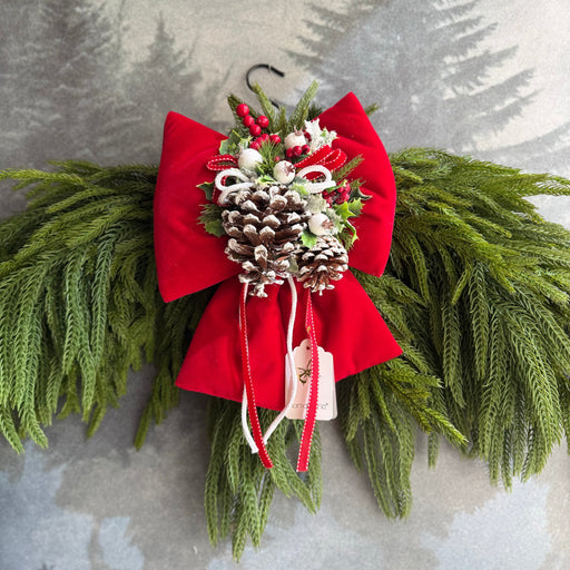 Fiocco in Velluto Rosso con Campane e Rami di Pino 55 cm - Fiori Di Lena