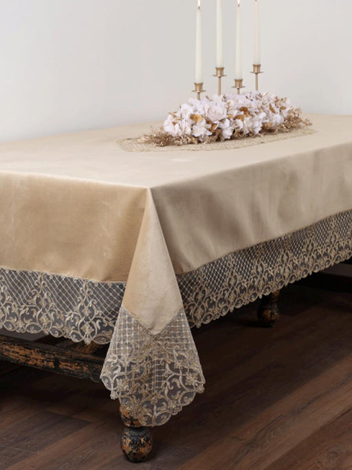 Tovaglia in velluto con pizzo champagne - Fiori di Lena