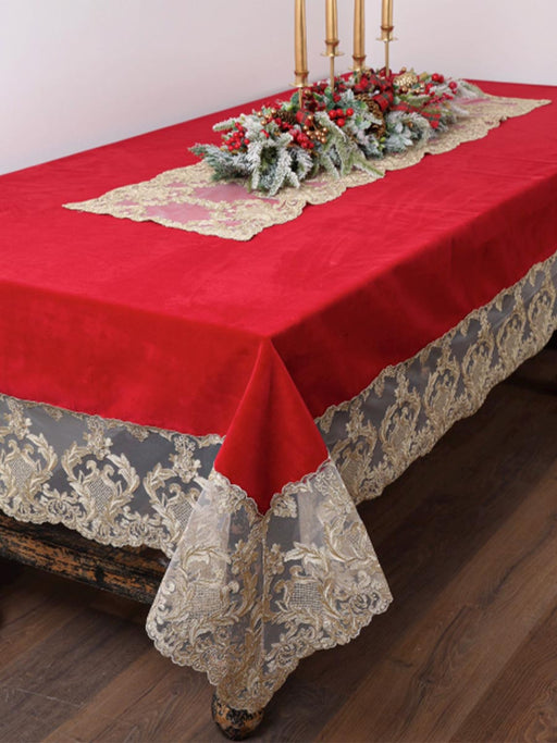 Tovaglia in velluto verde con pizzo oro 2.80×1.70cm - Fiori di Lena