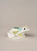Figura di rana in porcellana lucida, decorata con i colori verde e giallo, appartenente alla collezione origami.