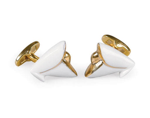 LladroGemelli in ottone bagnati in oro 18 karati con un petalo in porcellana lucida bianca e oro. Ispirato alla delicatezza del fiore di Heliconia.