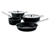 Set di pentole composto da Casseruola a due manici (AJM101/20B), Casseruola bassa a due manici (AJM102/24B), Casseruola a manico lungo (AJM105/16B), Padella a manico lungo (AJM110/24B) in alluminio con rivestimento antiaderente, nero, 2 Coperchi (AJM200/20, AJM200/24) in acciaio inossidabile 18/10.