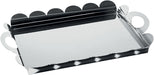 Vassoio rettangolare con bordo smerlato e manici in acciaio inossidabile 18/10 lucido.