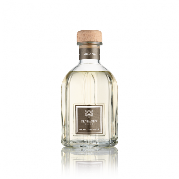 Fragranza d'ambiente Milano è un’esplosione di sensualità. Le intense note di patchouli, rinvigorite dal pepe e dal legno di sandalo, si accordano con frizzanti note di cedro regalando energia alle zone giorno. Un invito ad accomodarsi e condividere il piacere di stare insieme.
